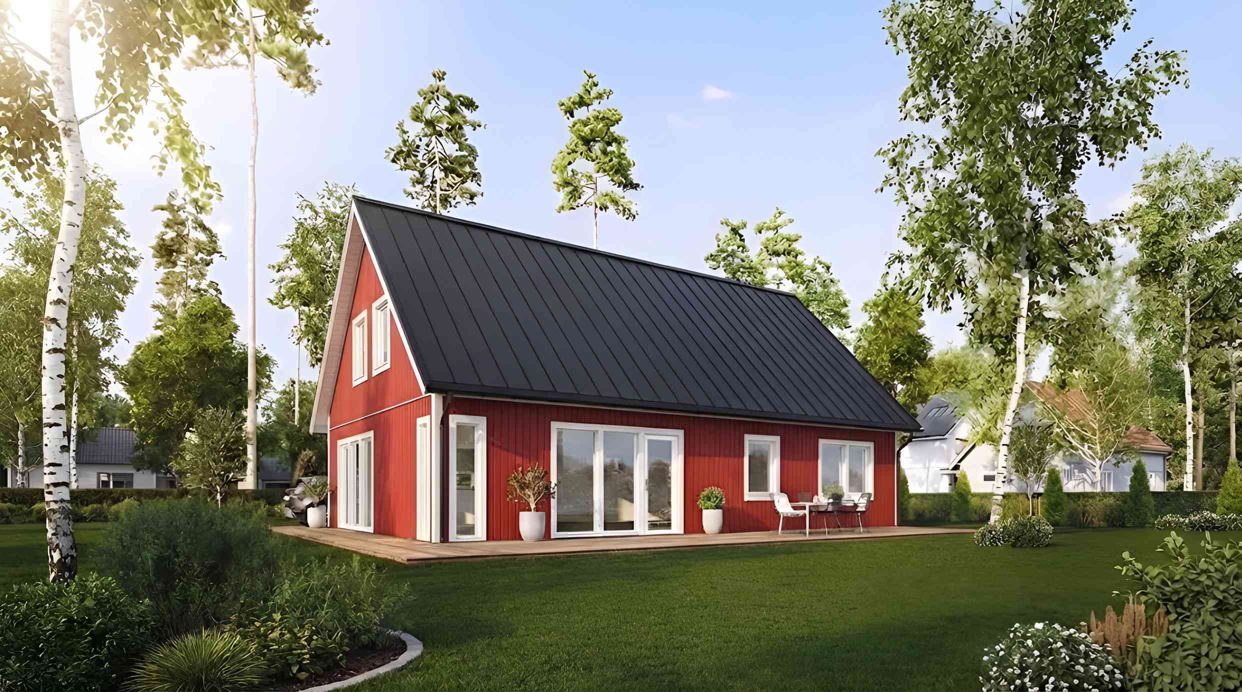 Med vår villabyggsats får ni ett fördelaktigt pris på allt ni behöver för att färdigställa ert drömhus. Läs mer i Leveransdeklarationen om vilka materialval vi räknat med i våra priser.
